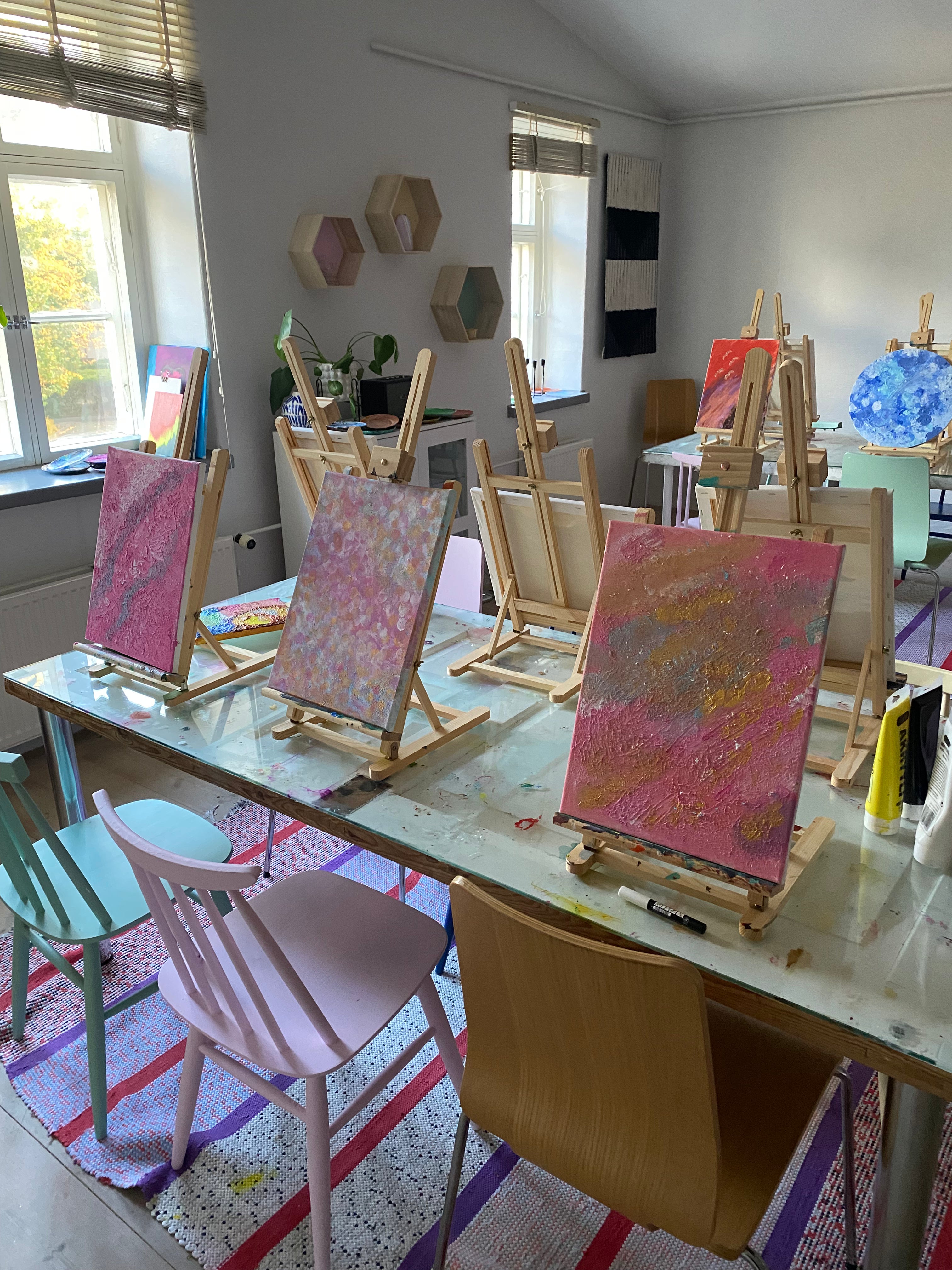 Luovat workshopit nyt Raumalla! Maalausta, alkoholimustetta ja taidegrafiikkaa. Myös yksityistilaisuudet!