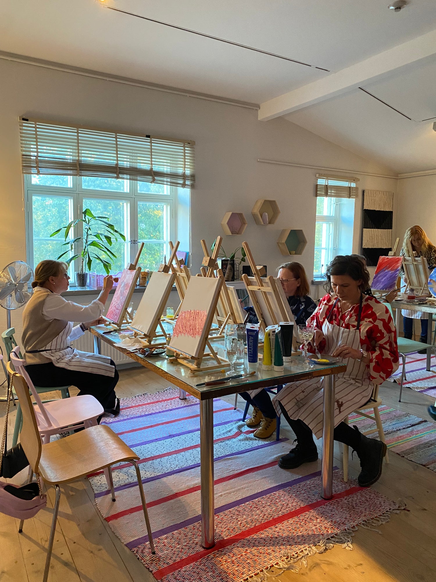 Taidet & Viini -maalauspajat järjestetään yleensä perjantaisin ja ne ovat kaikille avoin tapahtuma. Tule mukaan herättämään oma taiteilijasielusi ja toteuta taiteellinen näkemyksesi maalauspohjalle. Sinulla ei tarvitse olla aiempaa kokemusta, voit olla ensikertalainen tai harrastelija - pääasia on viettää mukava ilta workshopissa yksin tai kaverin kanssa. Ikäraja K18.