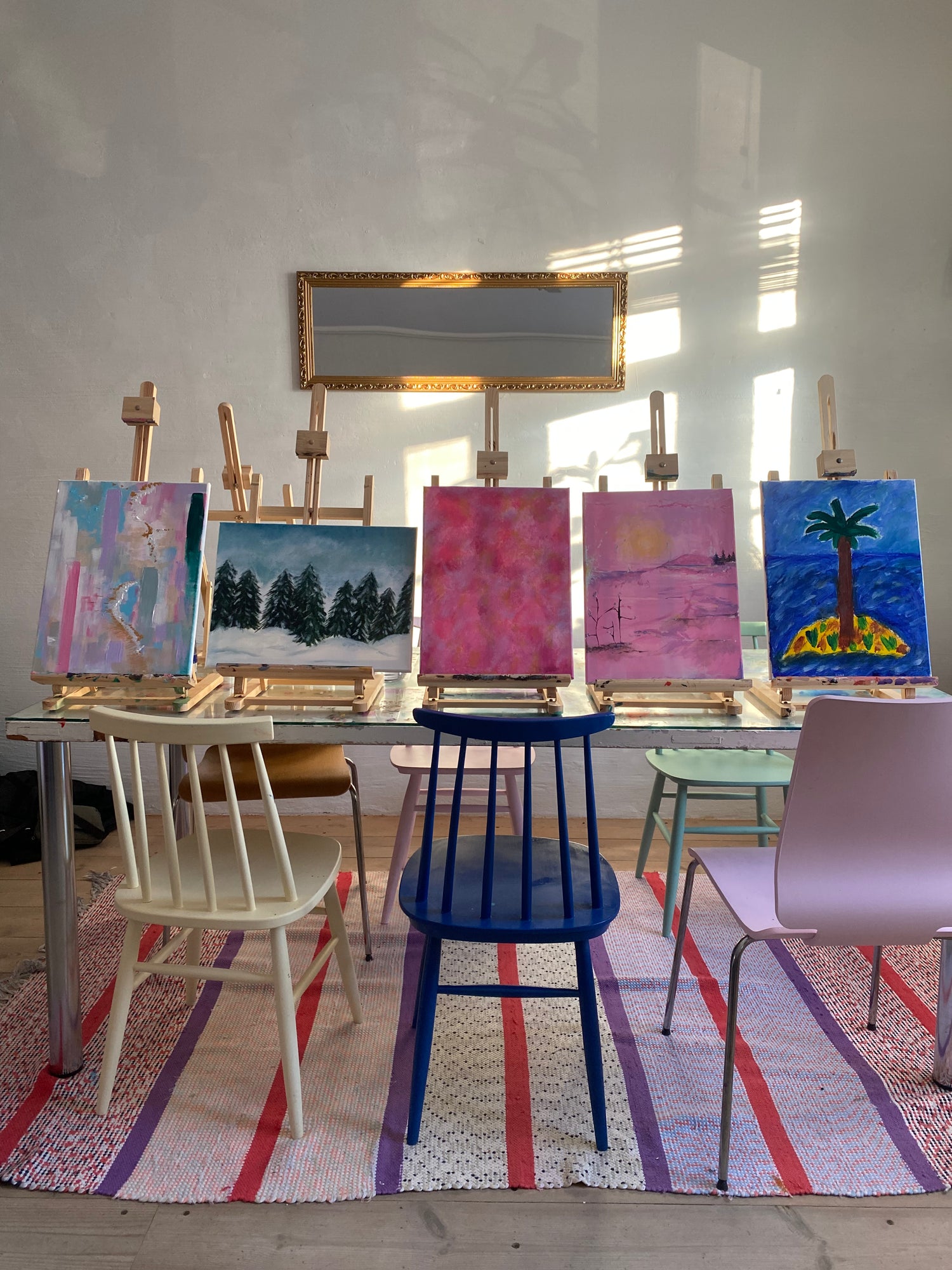 Workshopin alussa käydään läpi akryylimaalauksen perusteet ja mitä kaikkia tarvikkeita studiolla on käytössä. Ohjaaja opastaa illan aikana aina tarvittaessa. Taidet & Viini -maalauspajassa saat antaa luovuuden virrata ja toteuttaa juuri sellaisen teoksen kuin haluat. Maalaa abstrakti teos, muotokuva, Pinterestistä bongatttu inspismaisema tai katso mihin intuitio sinua ohjaa - tyyli on vapaa!