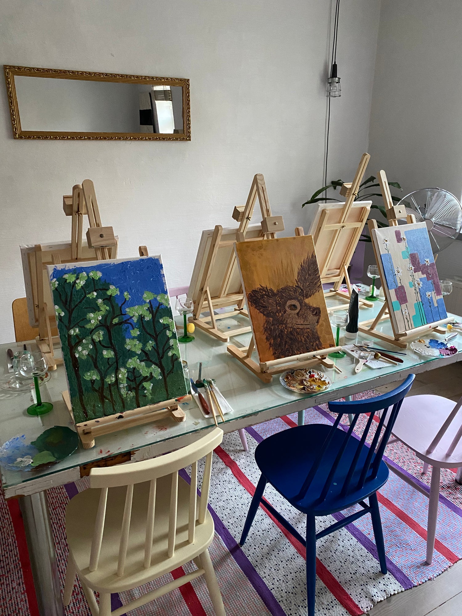 Art & Wine on täydellinen aktiviteetti esimerkiksi polttareihin, baby showereille, pikkujouluihin, tyky-päivään tai kaveriporukan illanistujaisiin. Varaa workshop omalle porukallesi ja nauttikaa luovasta hetkestä taidepajassa. Valittavana on joko akryylimaalaus tai alkoholimuste. Varaus on sitova! Ette tarvitse aiempaa kokemusta taiteen tekemisestä. Aluksi käydään läpi workshopin sisältö sekä tarvikkeet ja ohjaaja auttaa aina tarvittaessa teosten kanssa. Art & Wine on hauskaa ja luovaa hyvän mielen tekemistä.